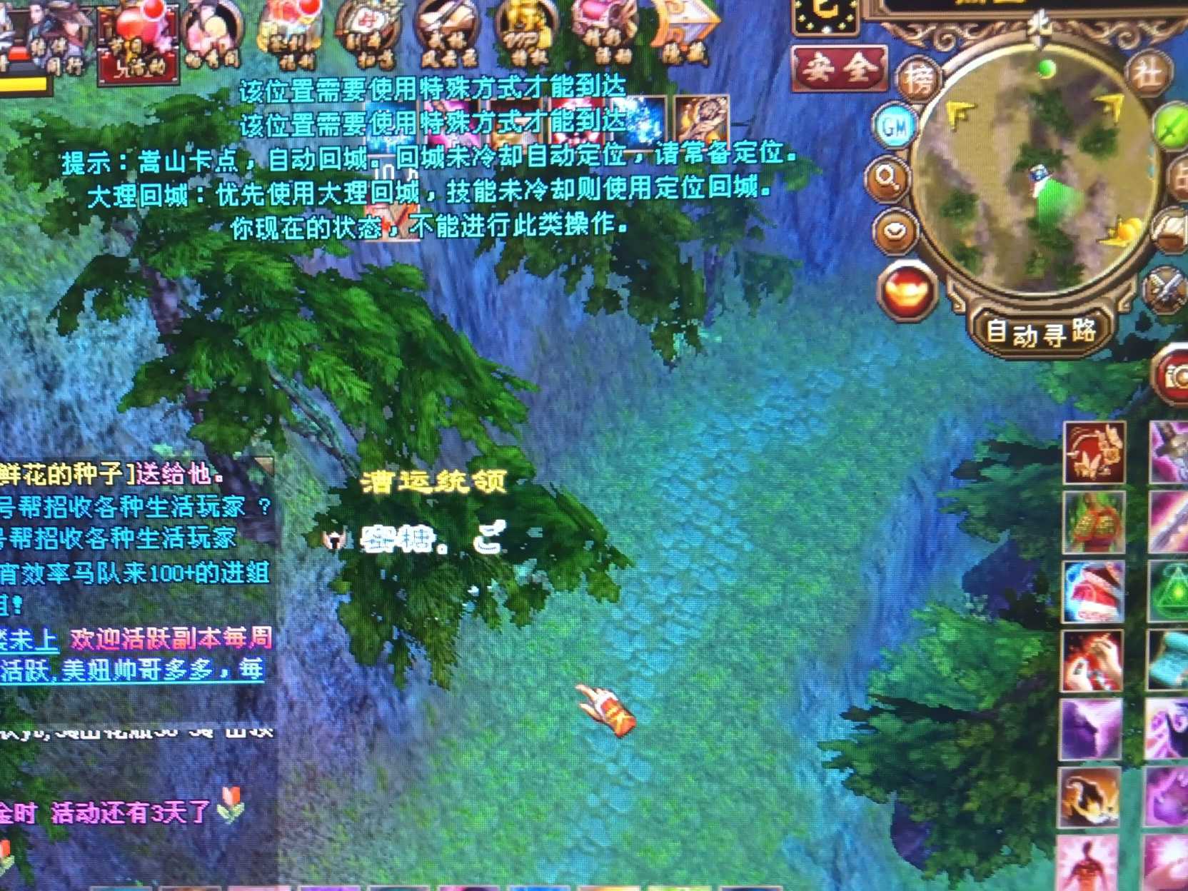 漕运状态:不能跟随,不能使用定位回城,不能使用形影不离,不能用大理回城,没有位移技能,下线重上也不行。该怎么出来?