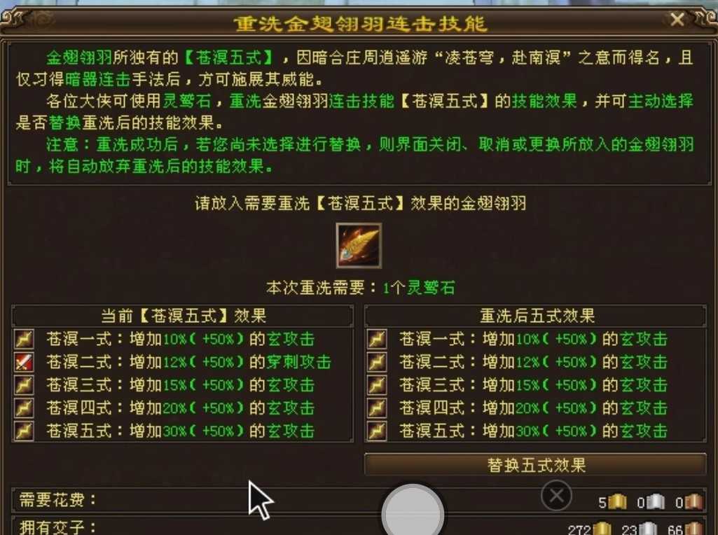 洗了N次 失去信心了 最后不经意的洗了几次居然成功了 经意的去洗技能居然花了我很多金币