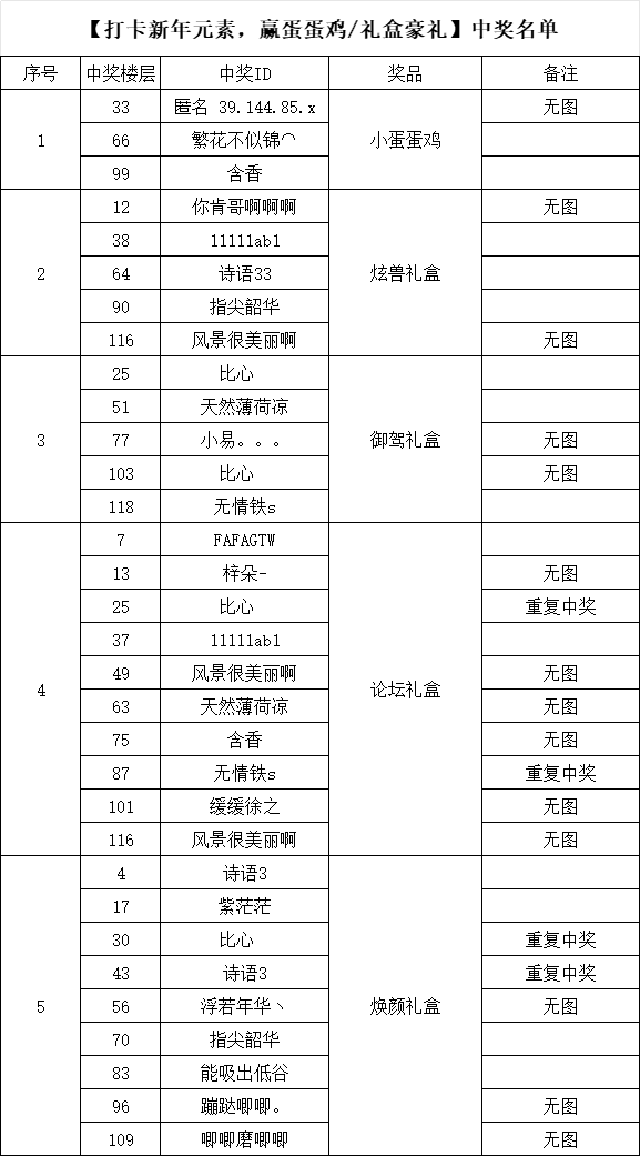 【活动】打卡新年元素,赢蛋蛋鸡/礼盒豪礼已结束 感谢小伙伴们的积极参与 愿大家在新的一年开心游戏,好运常在 恭喜以下中奖小伙伴 请中奖周边的小伙伴将联系地址私发或者回复以下楼层 中奖礼盒的小伙伴请注意查收私 ...