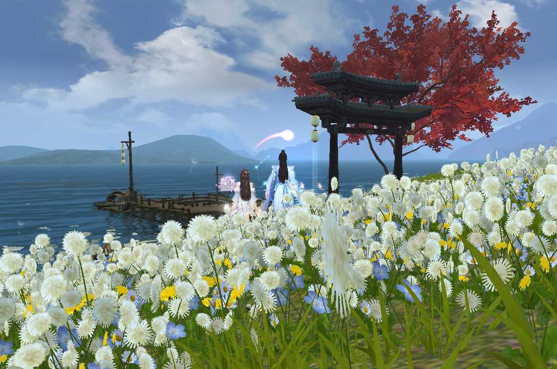 俩人周围铺满了**和白色的花,嗯,意境很好