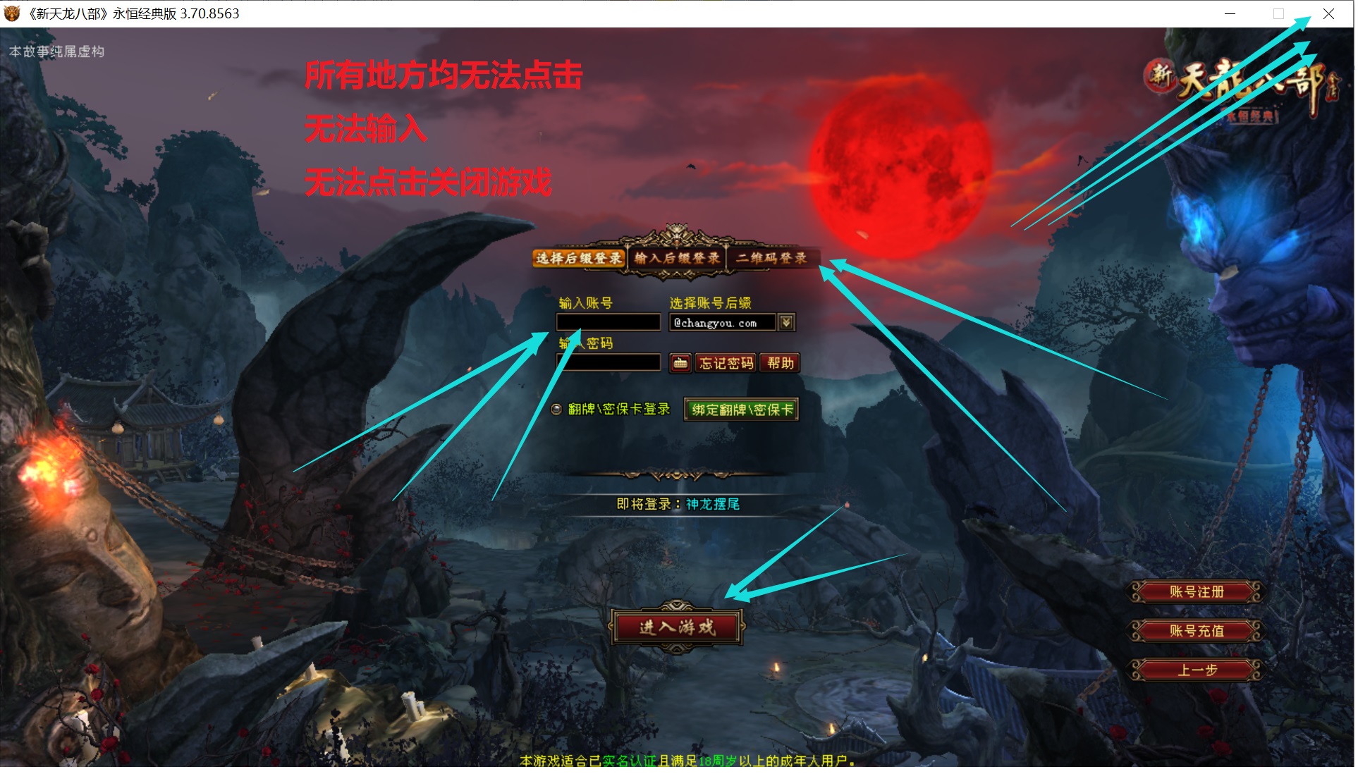 BUG问题一:打开游戏客户端之后,可以按enter键和esc键,无法登录游戏。 操作系统:Windows 10 64 位操作系统 笔记本; 游戏版本:仅两年来每周每次更新的游戏客户端; ...