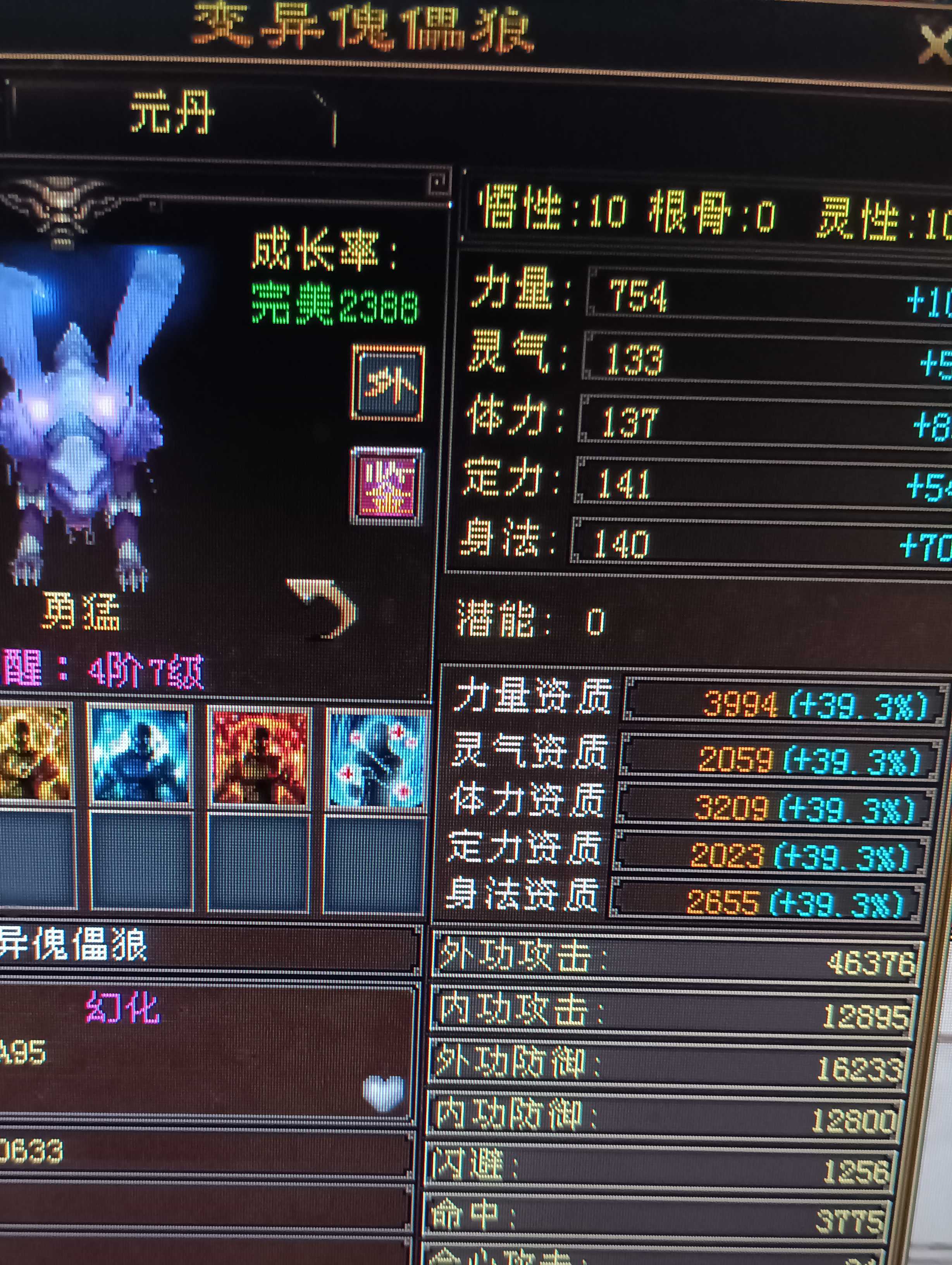 看灵性双10加多少31不是34是,比如年兽就不是超灵