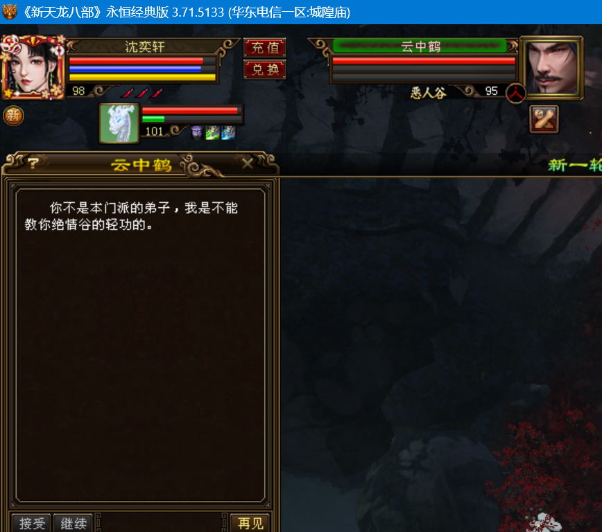 我门派是绝情谷,然后无聊去逛了一下恶人谷,去轻功那里提示我不能学该门派轻功,这很正常,但是提示的是“不能教你绝情谷的轻功”但是其他门派都是对应的,为此我特意去看了一下花,则是正确的“我不能教你桃花岛的 ...