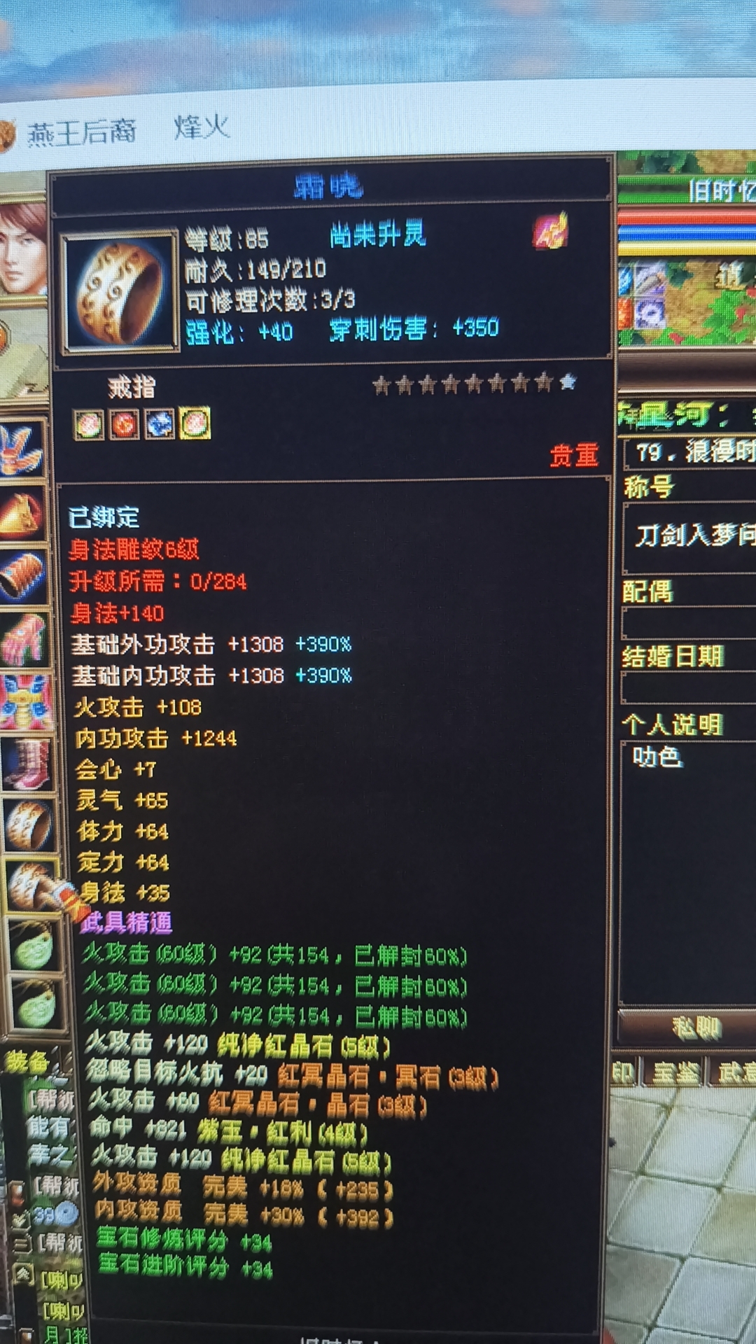 同样的等级同样装备的位置,同样的属性,会心,体力。为什么一个是七星一个是八星