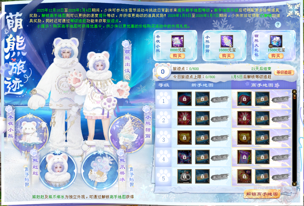 本帖最后由 茫茫. 于 2025-12-17 20:40 编辑 所在服务器:桃花影落 游戏昵称:芝芝芒芒. 发稿时间:2025.12.17 稿件内容:更新 天龙冰雪节“萌熊旅迹”活动来袭!可白嫖! 这次内测上新了5个外观:一件时装,两把 ...