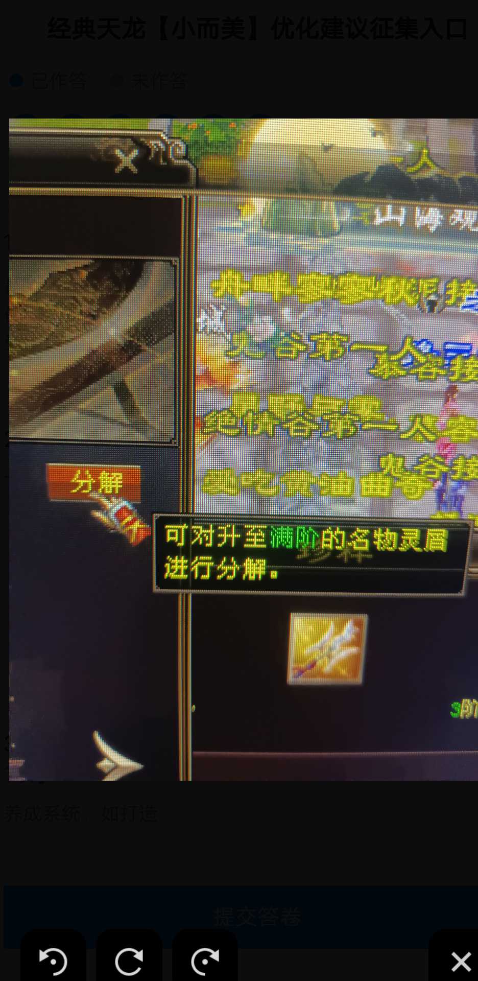 策划大大好,最近新增的珍粹系统希望分解功能修改成1阶分解而不是满阶分解。因为有的时候不小心用了不喜欢或者不想用的属性,就希望立马分解。